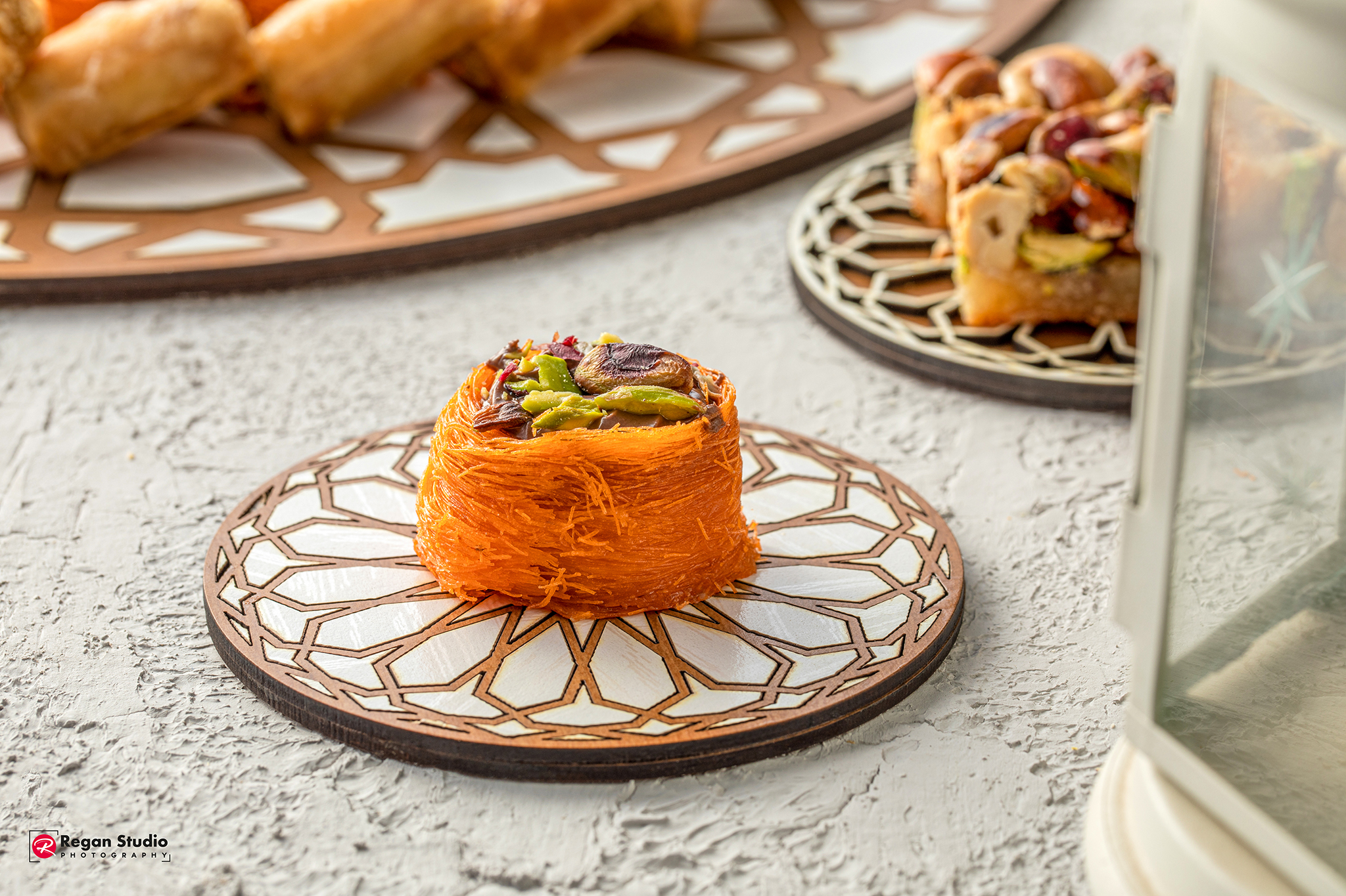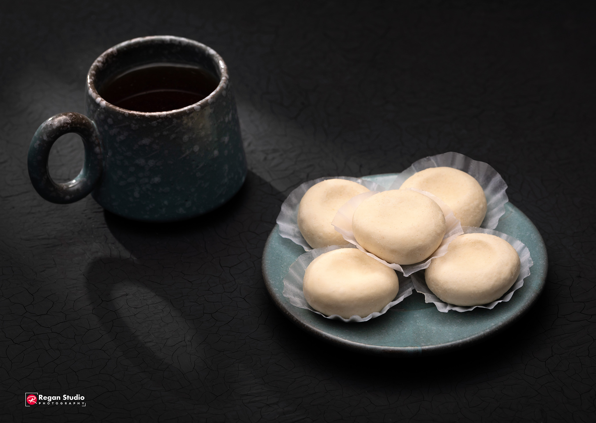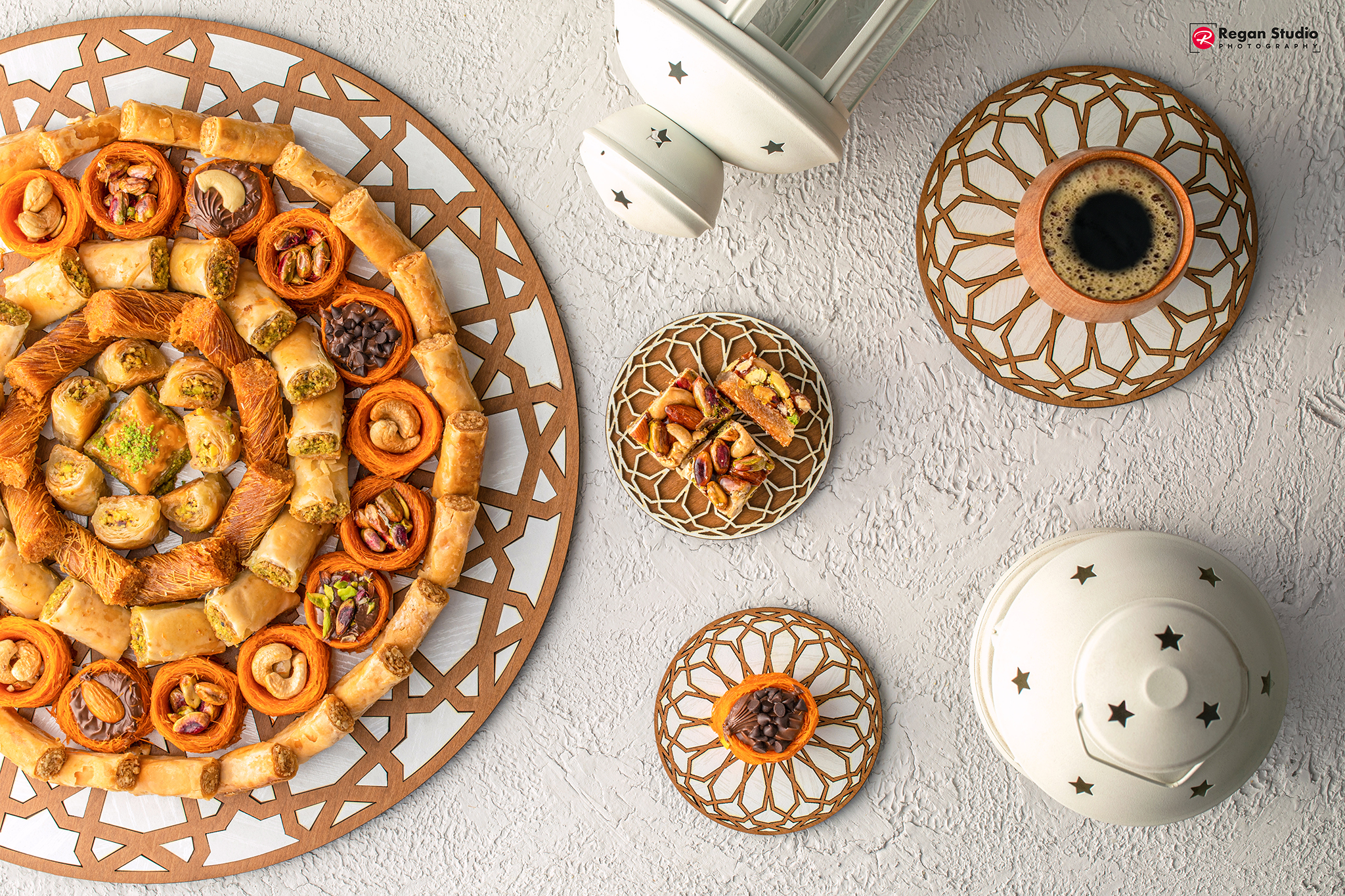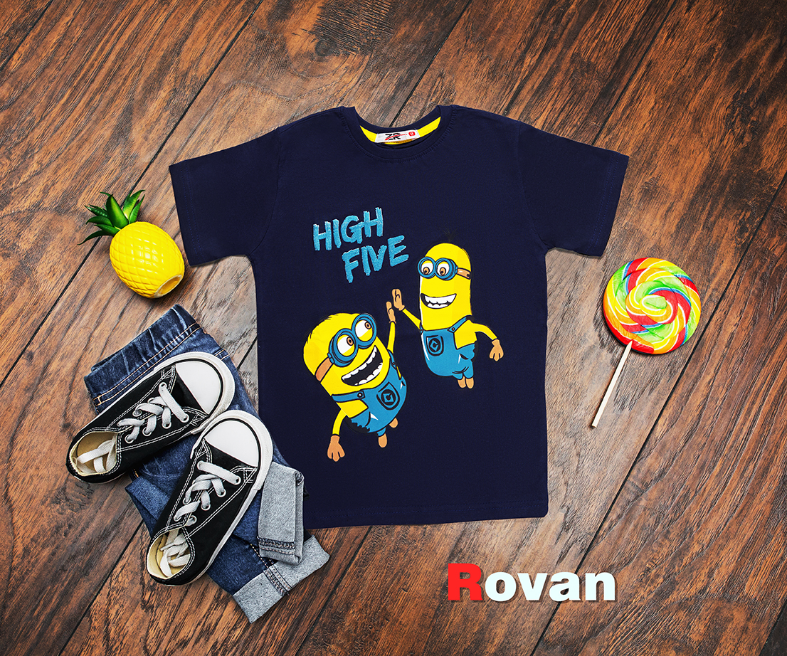 Blank white kid’s t-shirt laying on dark wood background with colorful lollipop, boy shirt summer mockup