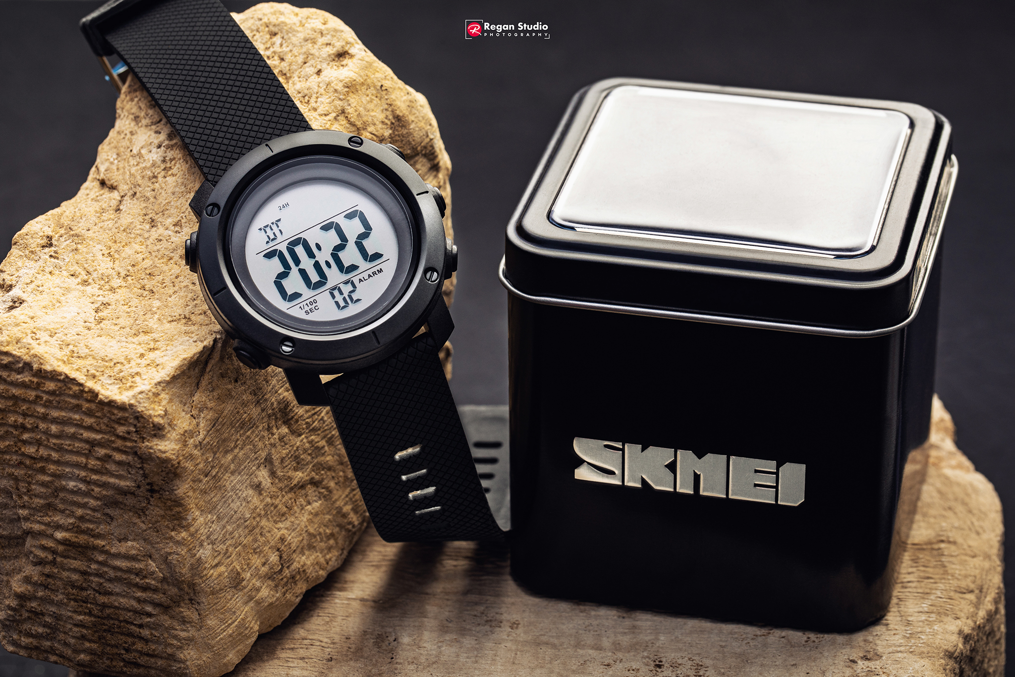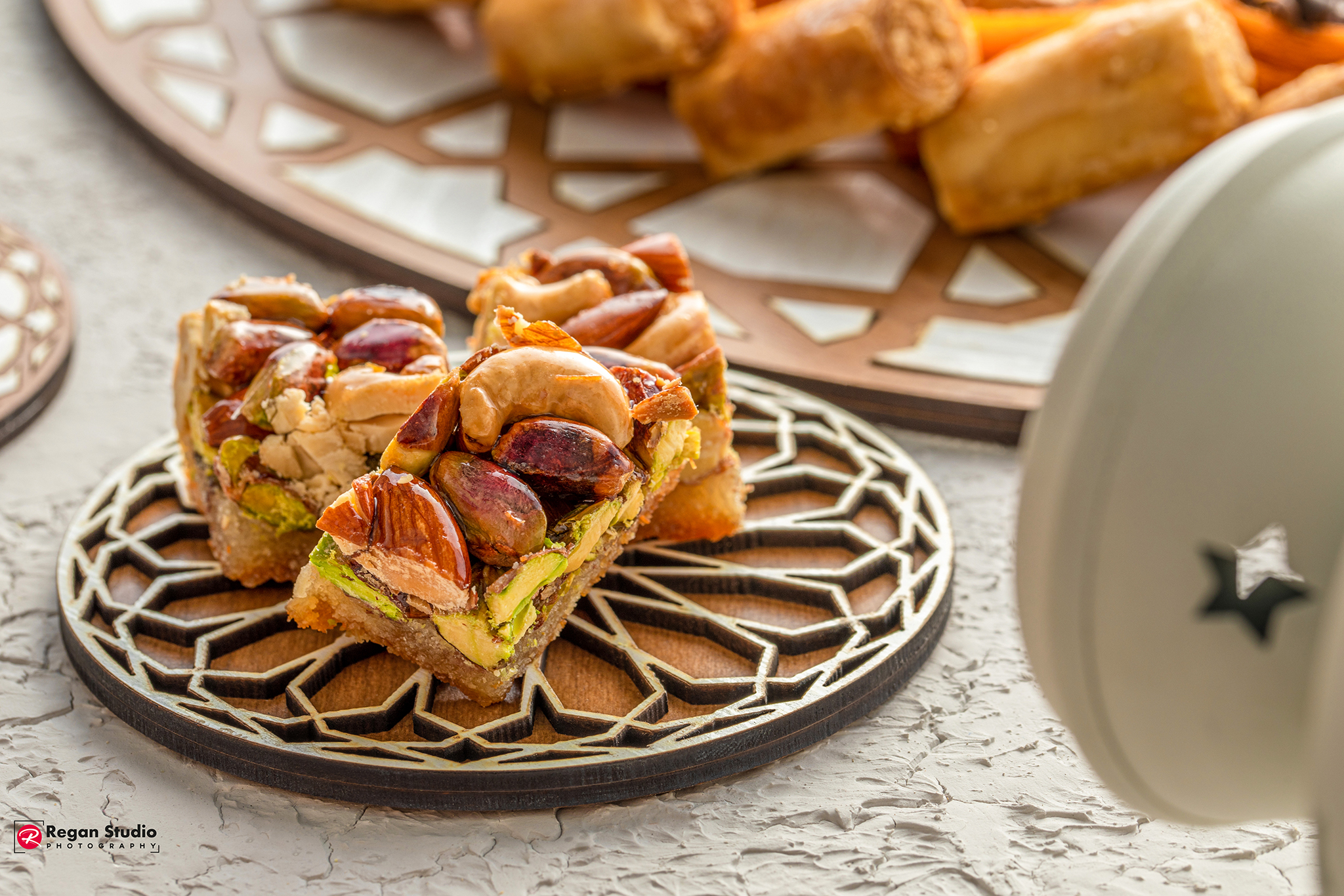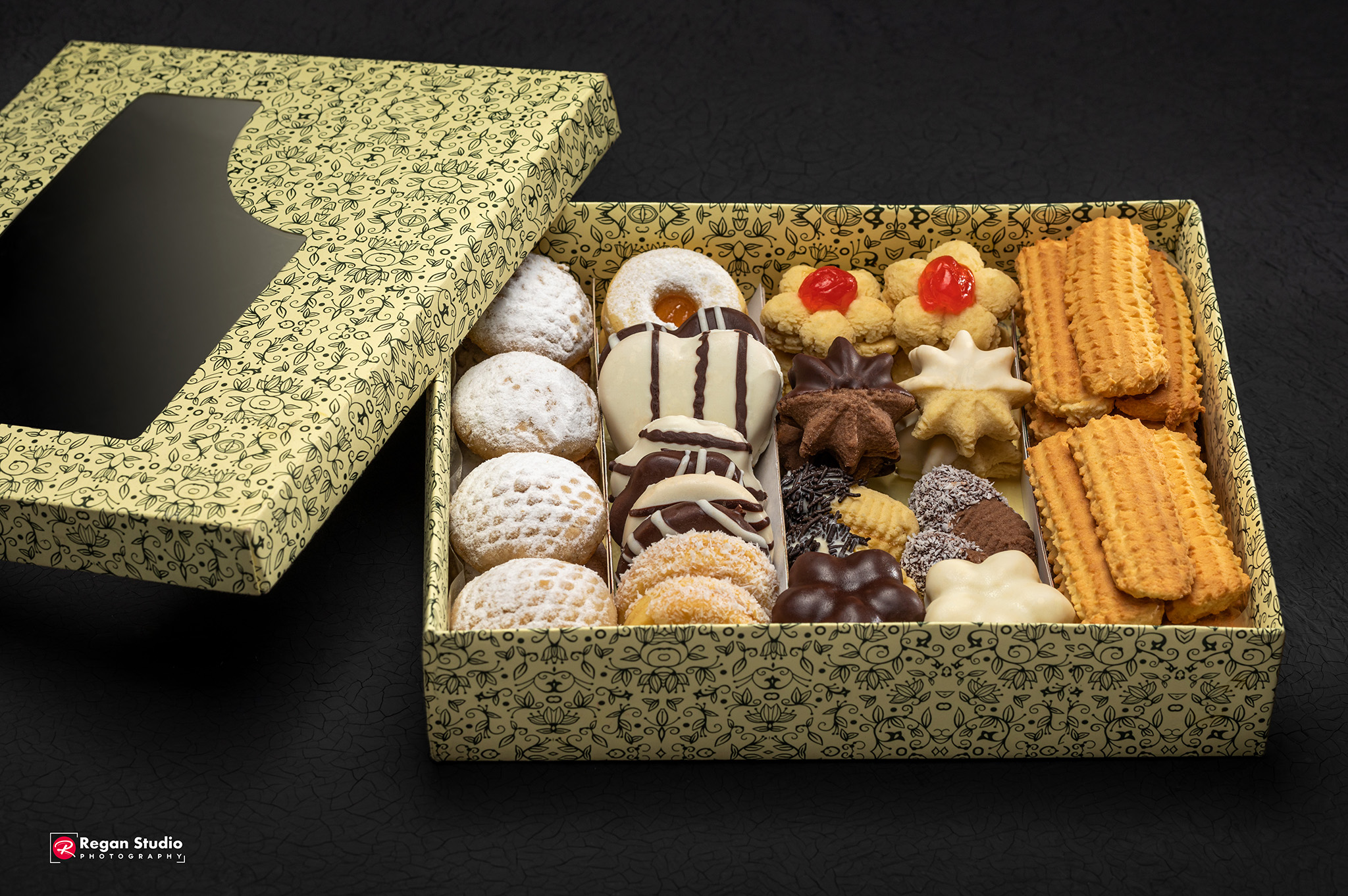 Blank white kid’s t-shirt laying on dark wood background with colorful lollipop, boy shirt summer mockup